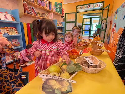 Nuestros peques fueron ayer al mercado de otoño a comprar los típicos frutos de esta maravillosa estación, y allí les esperaba la castañera, cantando su canción.